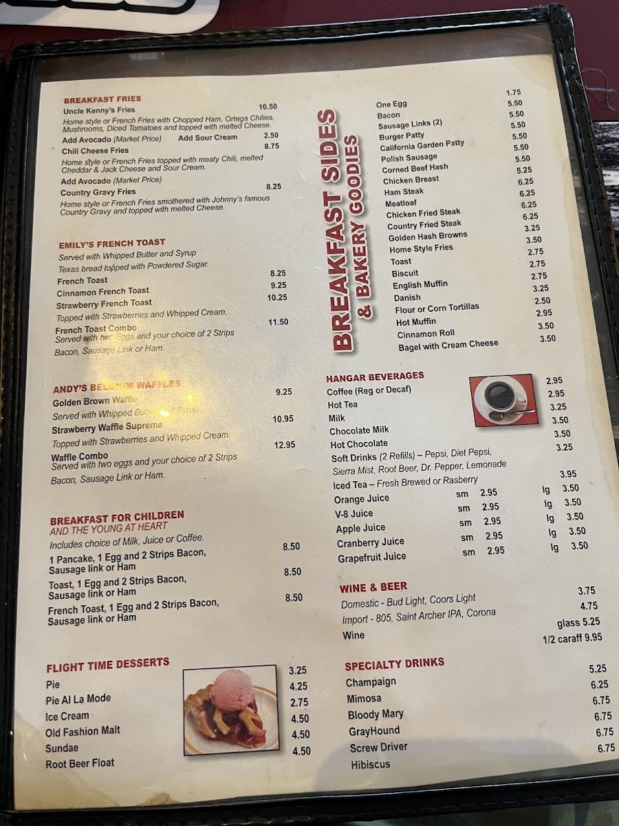 Three eggs, two bacon, 1/2 ham, one sausage link, one pancake, toast or biscuit & gravy